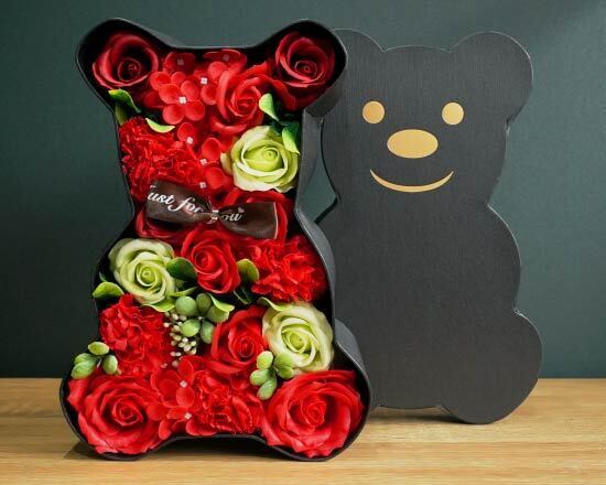 自立もする可愛いクマ型のBOXに、ソープフラワーが敷き詰められています。